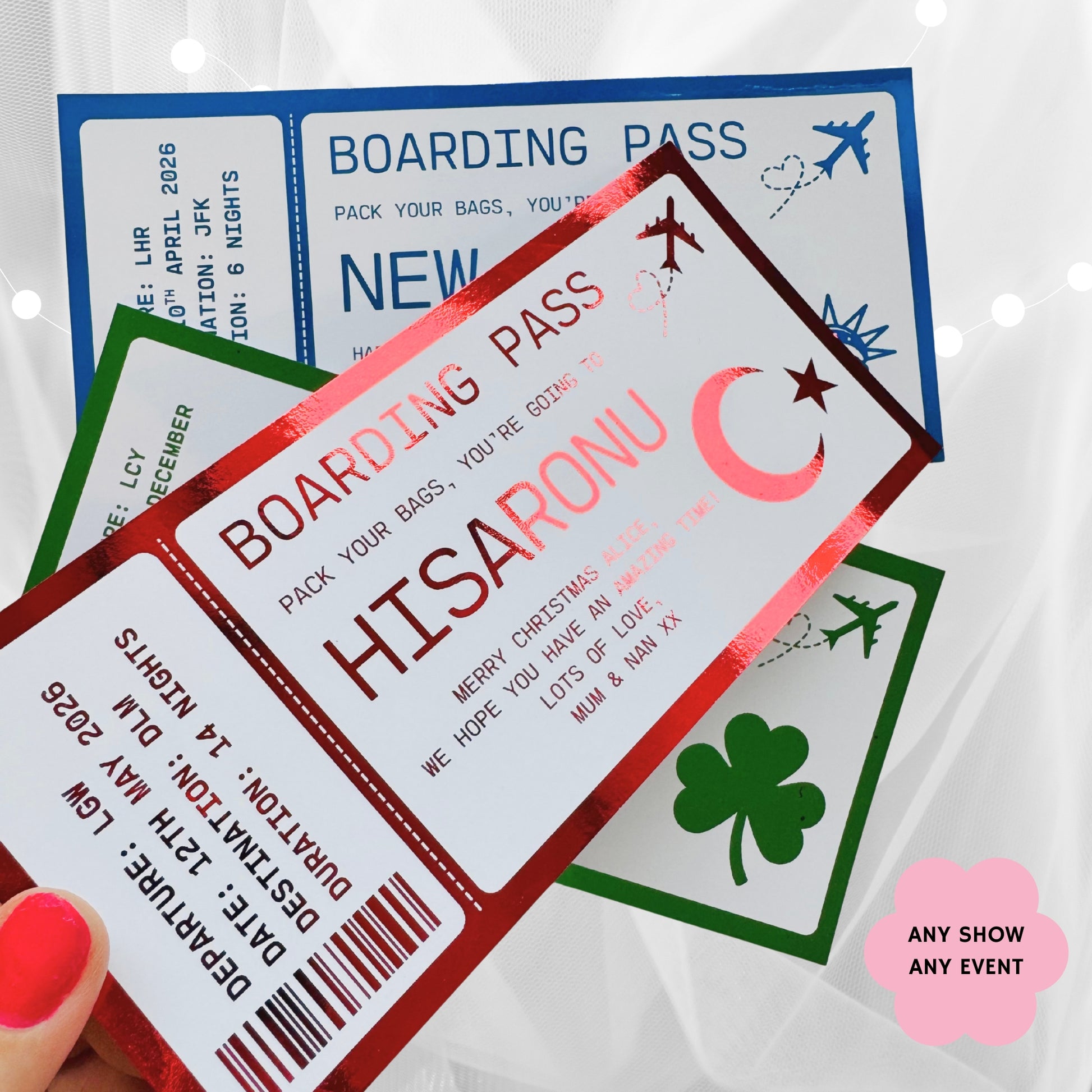 Make your surprise extra special with a personalised boarding pass! Perfect for holidays & short getaways!